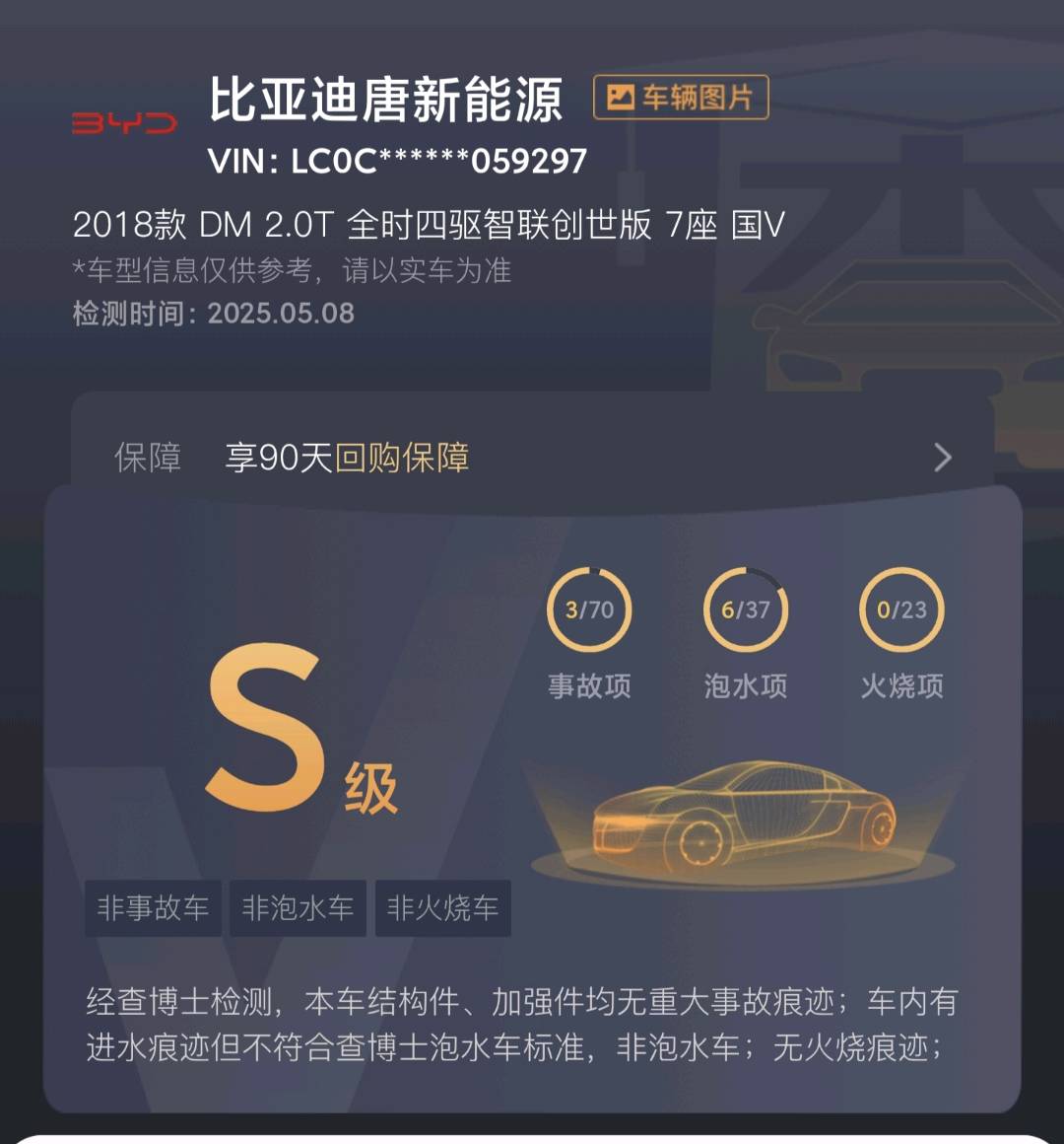 可通过检测报告了解车辆真实情况,明确车辆整体状况,车源放心